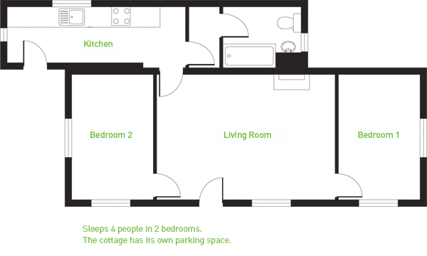 Recently renovated, the cottage comprises a large sitting/dining room, two bedrooms (one double and one twin), a modern equipped kitchen and bathroom.